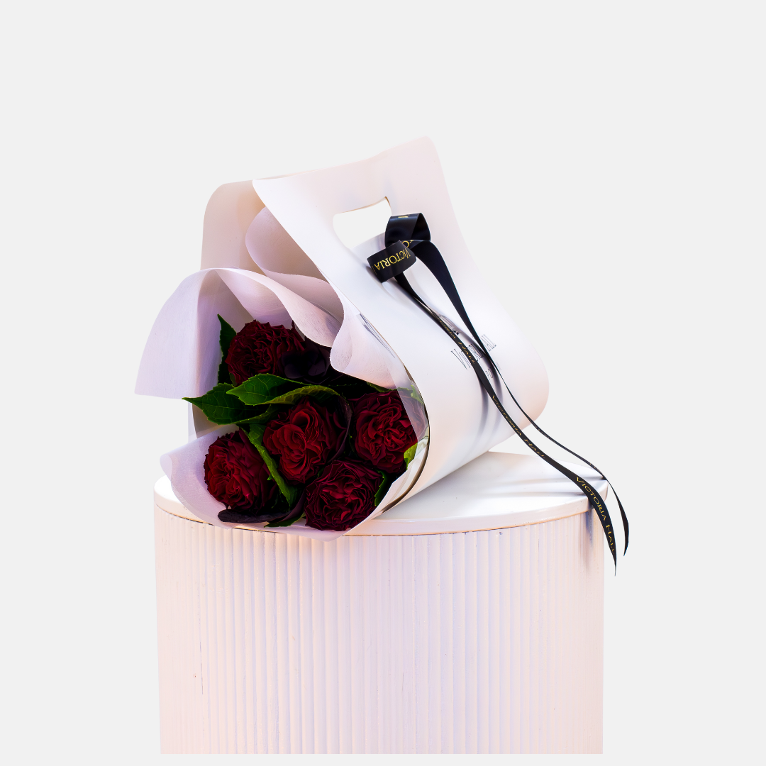 Australian grown red roses carefully wrapped in our custom Victoria Hall flower bag and finished with a flourish of ribbons. This product comes with a water source to ensure your blooms arrive fresh.